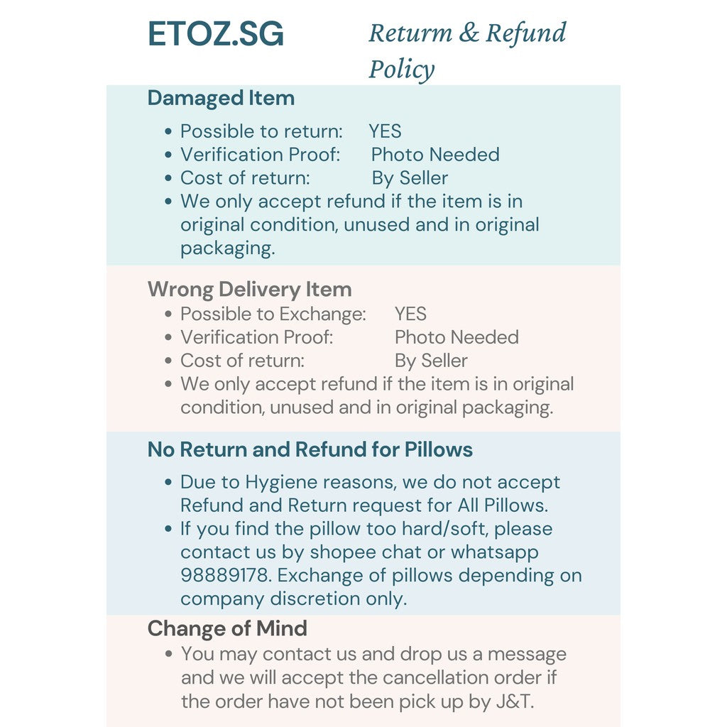 *Due to hygiene reason, we do not accept exchange or refund for pillows.*